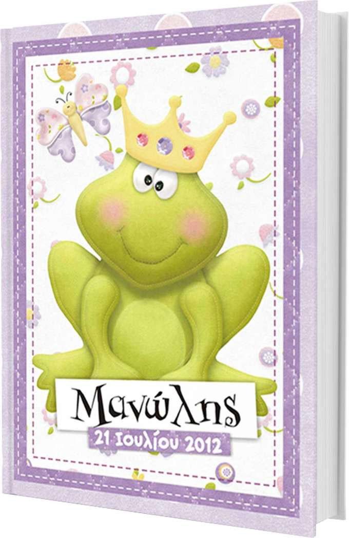 Βιβλίο ευχών με θέμα βάτραχος πρίγκιπας με διαστάσεις 30 x 21.5 cm. Ιδανικό για βάπτιση σε αγοράκι. Μπορούμε να προσαρμόσουμε οποιο άλλο θέμα θέλετε.