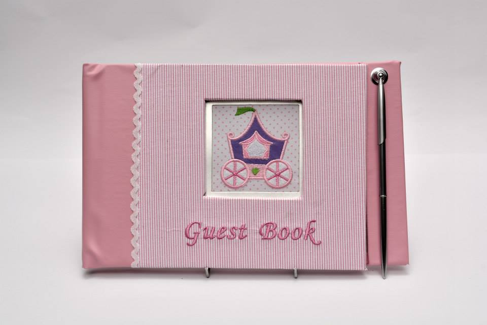 Βιβλίο Ευχών άμαξα με στυλό σε ροζ απόχρωση. Διάσταση 31 x 20 εκ.