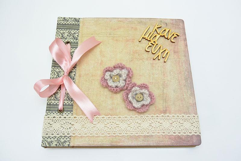 Βιβλίο Ευχών βάπτισης στολισμένο με λουλούδια απο οικολογικό χαρτί. Διάσταση βιβλίου 23 x 23 εκ. Το βιβλίο έχει 100 σελίδες.