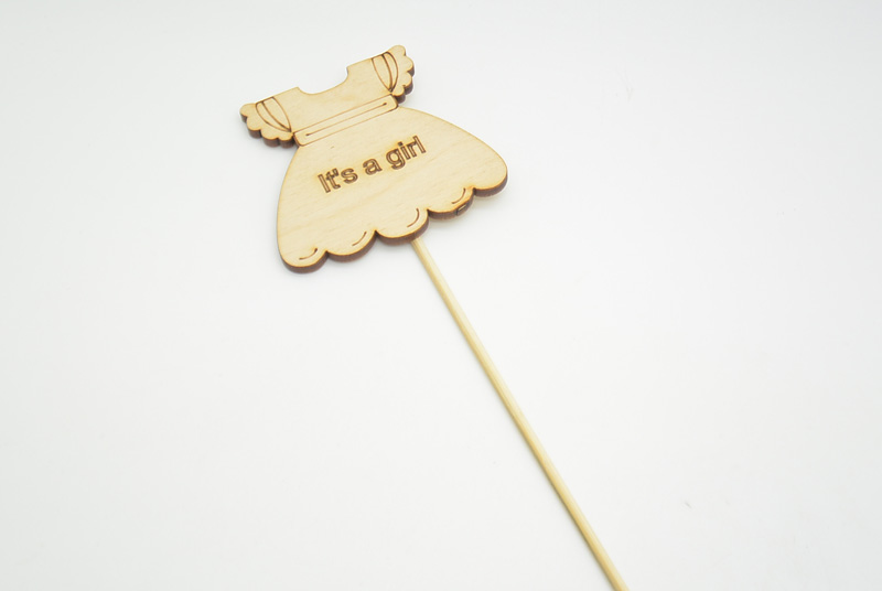 Ξύλινο Στικ φορεματάκι its a girl για μπομπονιέρες ή διακόσμηση βάπτισης. Το ξύλινο διακοσμητικό έχει διάσταση 8 εκ και αφορά την μεγαλύτερη διάσταση του διακοσμητικού είτε πλάτος είτε ύψος και το στικ έχει διάσταση 34 εκ.