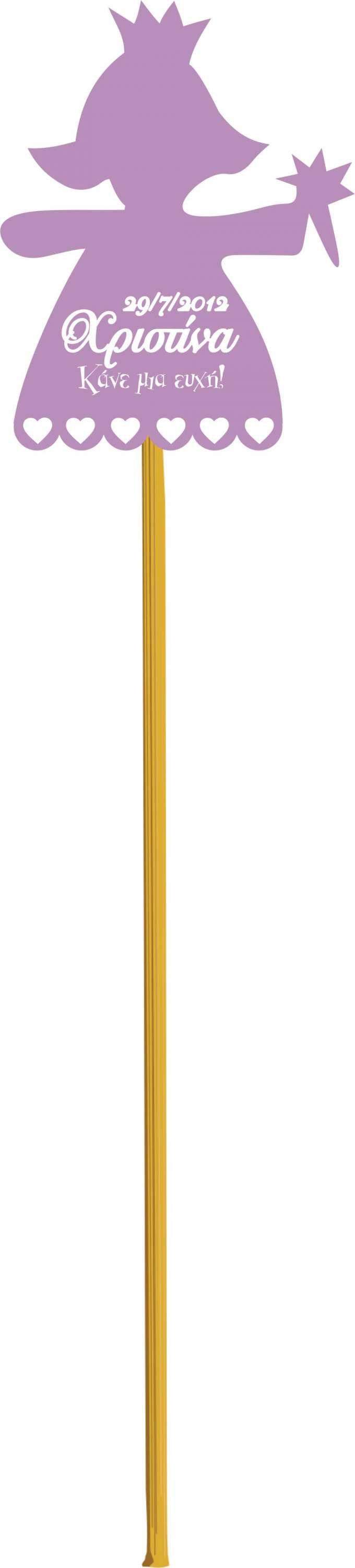 Ξύλινο Στικ πριγκίπισσα για διακόσμηση. Μπορεί να γίνει οποιαδήποτε θέμα και χρώμα επιθυμείτε. Το διακοσμητικό στην κορυφή έχει διάσταση 8cm το μέγεθος του stick είναι 20 cm.