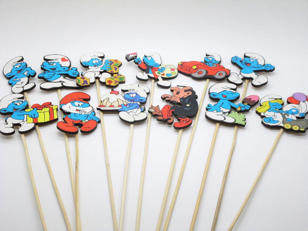 Ξύλινα Στικ στρουμφάκια σε διάφορες φιγούρες.