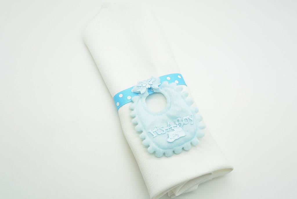 Στολισμός Πετσέτας ιδανικός για στολισμό βάπτισης με θέμα its a boy. Μπορεί να γίνει σε διάφορες αποχρώσεις. Η πάνινη σαλιάρα έχει διάσταση 10 cm x 7 cm.
