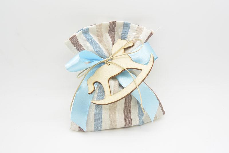 Διακόσμηση Βάπτισης | Μπομπονιέρα Πουγκί ριγέ με ξύλινο αλογάκι (611796)