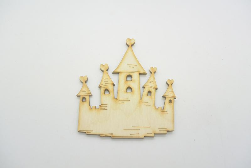 Ξύλινο Διακοσμητικό κάστρο σε φυσικό άβαφο με διάσταση 6.5 x 6.6 εκ. Συσκευασία 50 τεμαχίων. Η τιμή αφορά το τεμάχιο.