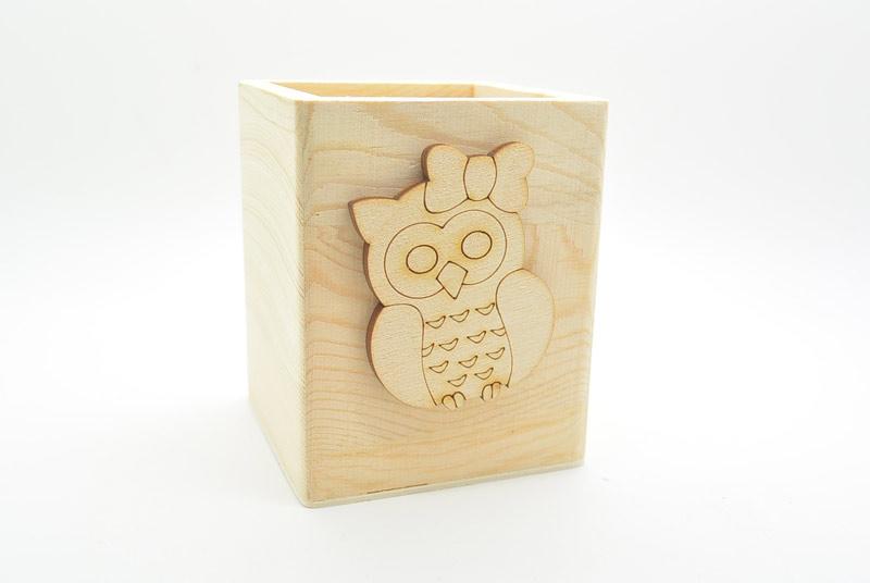 Μπομπονιέρα Ξύλινη Μολυβοθήκη κουκουβάγια (152095)