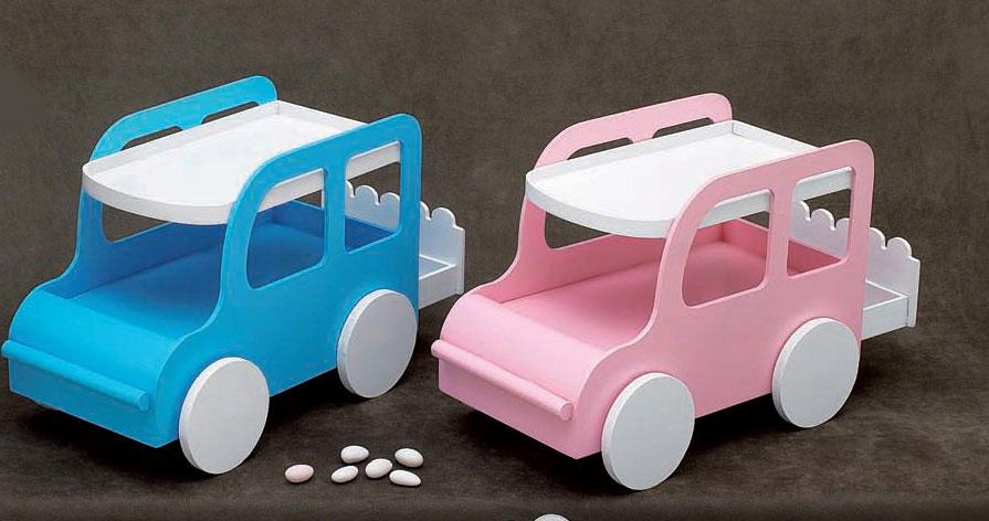 Ξύλινο Display για μπομπονιέρες με σχέδιο αυτοκινητάκι σε 2 αποχρώσεις. Διαστάσεις 32 x 18 x 23 cm.