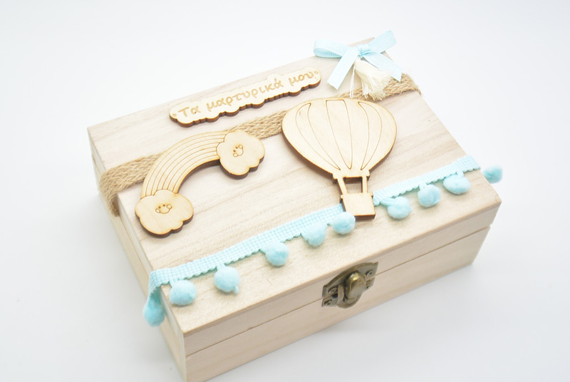 Διακόσμηση Βάπτισης | Ξύλινο Κουτί μαρτυρικών αερόστατο (10501071)