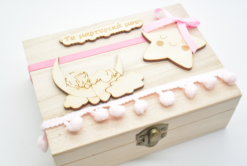 Διακόσμηση Βάπτισης | Ξύλινο Κουτί μαρτυρικών αστεράκι (10501007)