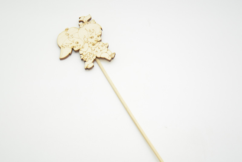 Ξύλινο Στικ  σταλίτσα και bam bam για μπομπονιέρες ή διακόσμηση βάπτισης. Το ξύλινο διακοσμητικό έχει διάσταση 8 εκ και αφορά την μεγαλύτερη διάσταση του διακοσμητικού είτε πλάτος είτε ύψος και το στικ έχει διάσταση 34 εκ.