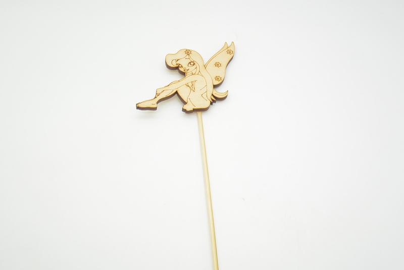 Ξύλινο Στικ νεράιδα για μπομπονιέρες ή διακόσμηση βάπτισης. Το ξύλινο διακοσμητικό έχει διάσταση 8 εκ και αφορά την μεγαλύτερη διάσταση του διακοσμητικού είτε πλάτος είτε ύψος και το στικ έχει διάσταση 34 εκ.
