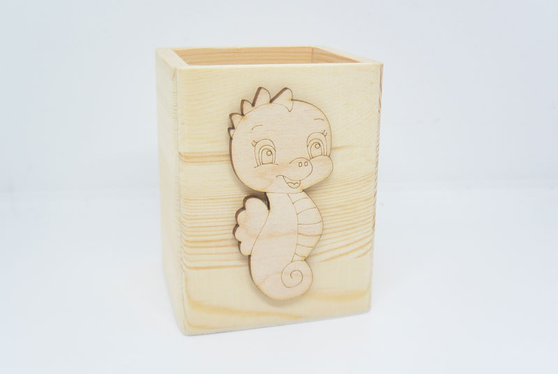 Μολυβοθήκη Ξύλινη ιππόκαμπος με διάσταση 8 x 8 x 10 εκ. Η τιμή αφορά σκέτο το αντικείμενο.