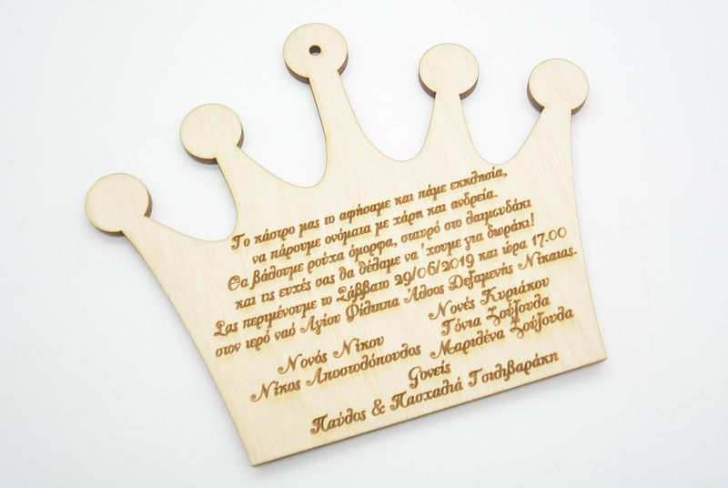 Διακόσμηση Βάπτισης | Ξύλινο Προσκλητήριο με θέμα κορώνα (5123793)