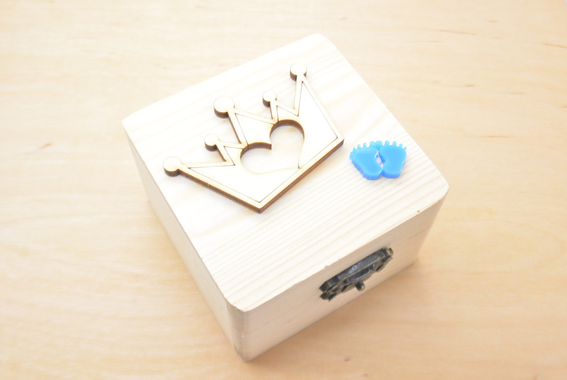 Ξύλινο κουτί κορώνα με λεπτομέρειες plexiglass. Απο το υπομενού μπορείτε να επιλέξετε το χρώμα στις λεπτομέρειες plexiglass. Διάσταση κουτί 8 x 8 x 5  cm.