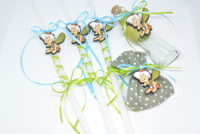 Σετ λαδικού με θέμα μπαμ μπαμ απο τους flinstone το οποίο περιλαμβάνει 3 κεράκια για την κολυμπήθρα, σαπουνάκι και μπουκαλάκι για το λάδι. Μπορούν να γίνουν ότι φιγούρες θέλετε.