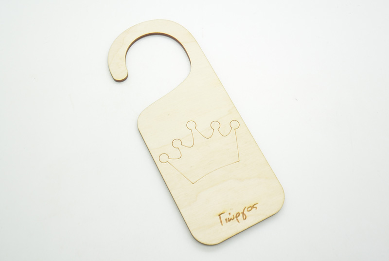 Διακοσμητικό πόρτας για μπομπονιέρα με θέμα κορώνα. Διάσταση 6 x 15 εκ. Μπορεί να χαρακτεί το όνομα του μωρού.