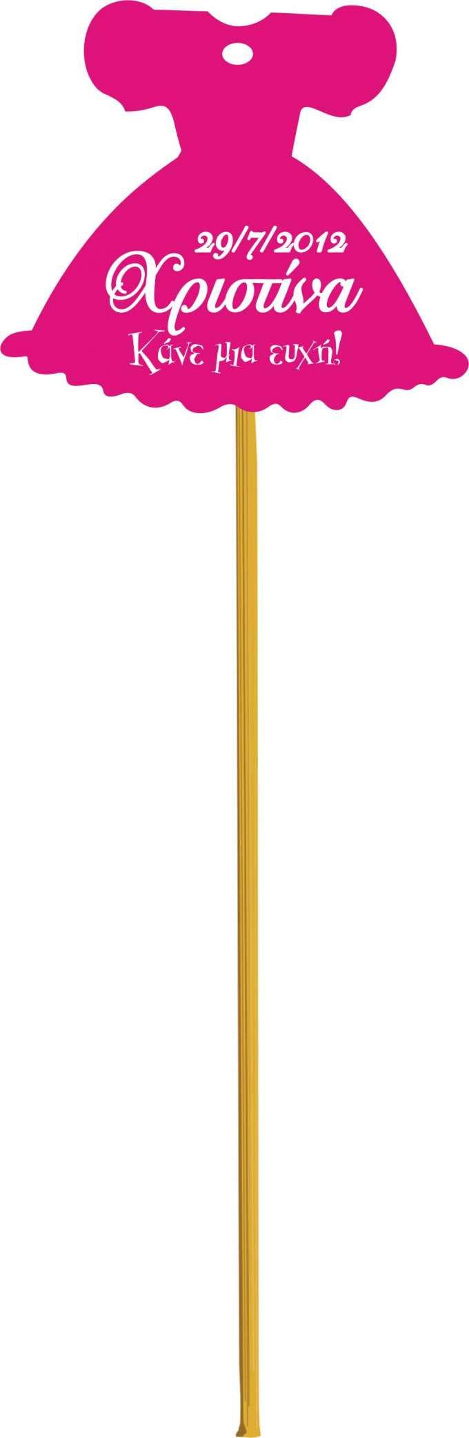 Ξύλινο Στικ φορεματάκι για διακόσμηση. Μπορεί να γίνει οποιαδήποτε θέμα και χρώμα επιθυμείτε. Το διακοσμητικό στην κορυφή έχει διάσταση 8cm το μέγεθος του stick είναι 20 cm.