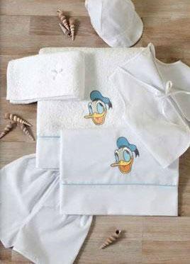Λαδόπανα άριστης ποιότητας με σχέδιο donald duck. Το σετ περιλαμβάνει πετσέτα μικρή και μεγάλη, σεντονάκι και σετ εσώρουχα.