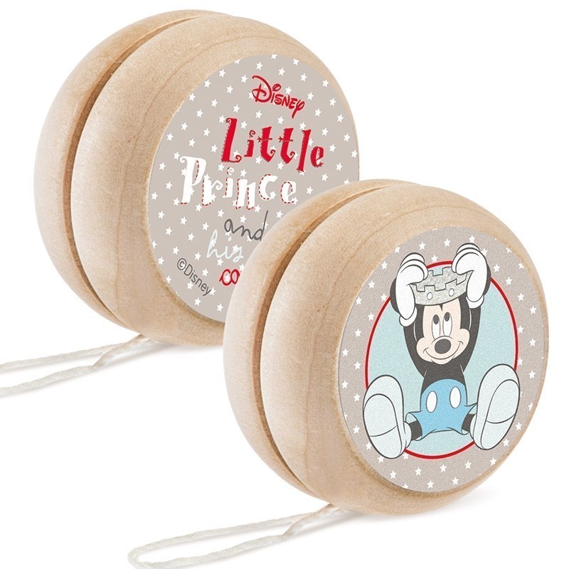 Disney ξύλινο natural γιο-γιο με σκοινάκι. Είναι διακοσμημένο με αυτοκόλλητο print Mickey mouse Little prince in his castle σε σιέλ αποχρώσεις με διαφορετικό σχέδιο μπρος-πίσω.
