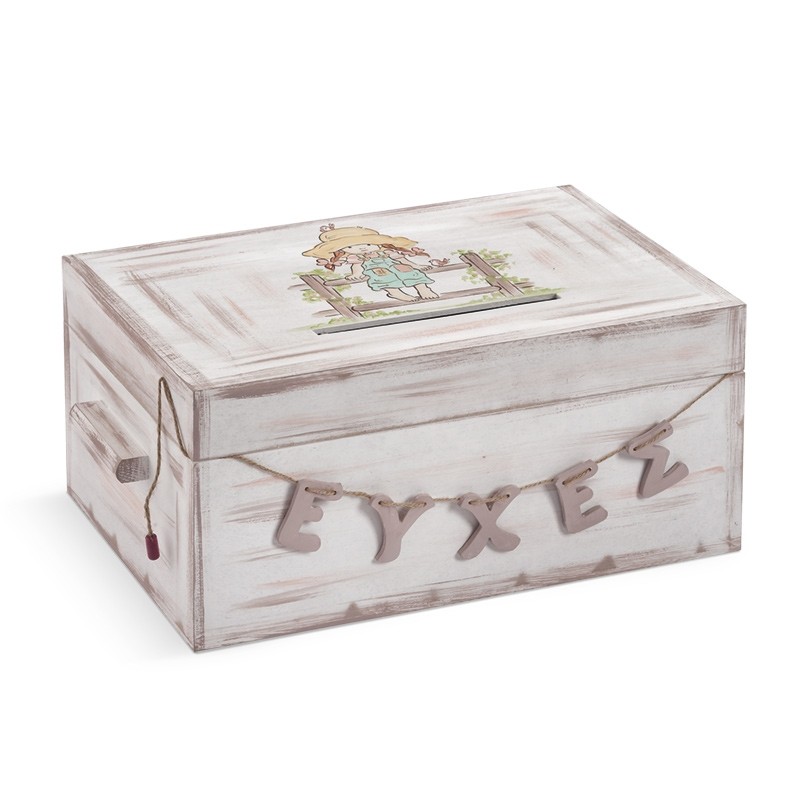 Ξύλινο κουτί ευχών βάπτισης Sarah Key
