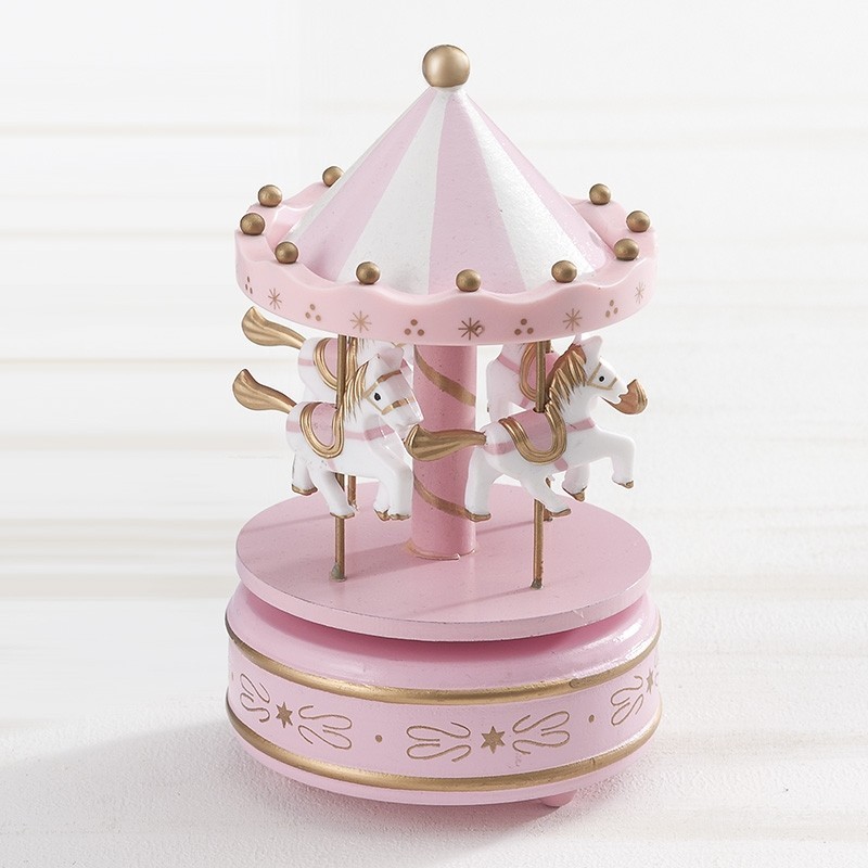 Ξύλινο μουσικό καρουζέλ ροζ-λευκό με αλογάκια. Ιδανικό για διακοσμήσεις και ως δώρο