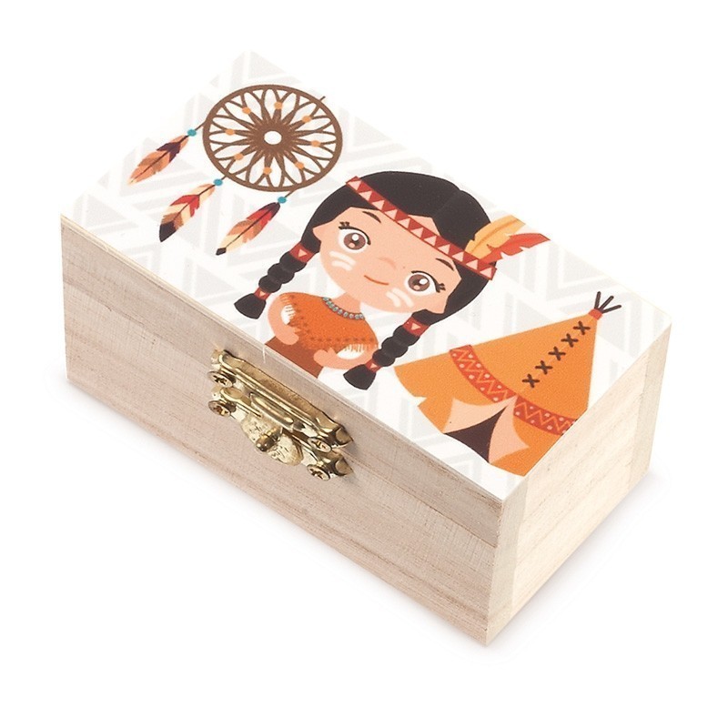 Ξύλινο natural σεντούκι με μεταλλικό κούμπωμα. Είναι διακοσμημένο με αυτοκόλλητο print ινδιάνα.