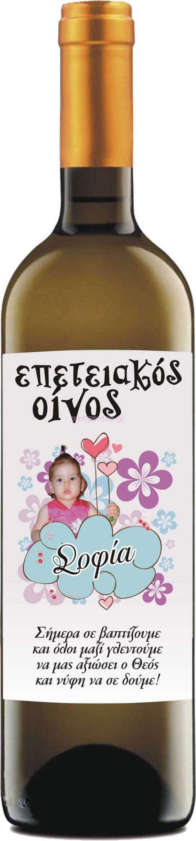 Ετικέτα Κρασιού με προσωπικό χαρακτήρα για εντυπωσιακό στολισμό στην δεξίωση της βάπτισης του παιδιού σας.