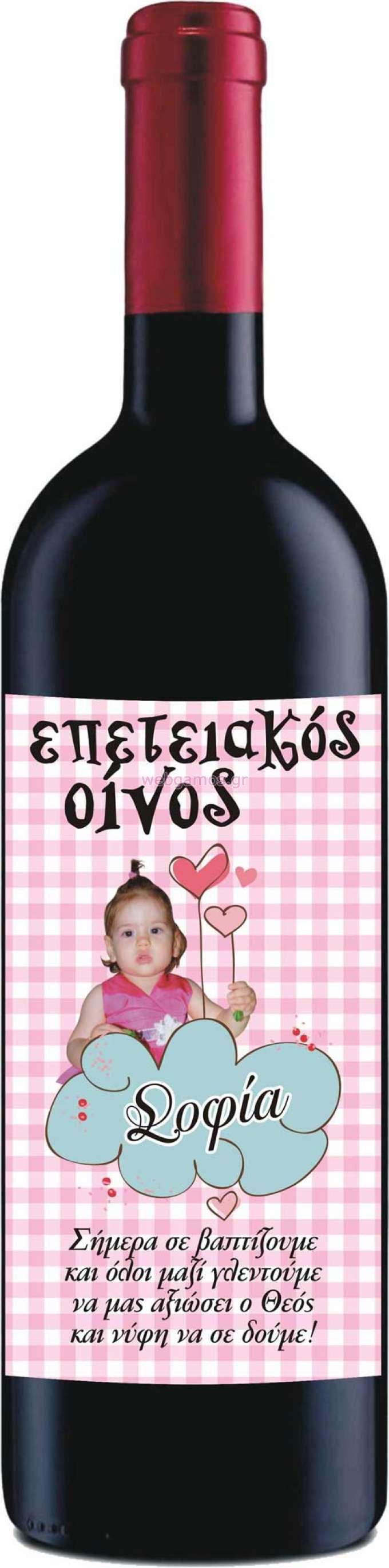 Ετικέτα Κρασιού με προσωπικό χαρακτήρα για εντυπωσιακό στολισμό στην δεξίωση της βάπτισης του παιδιού σας.