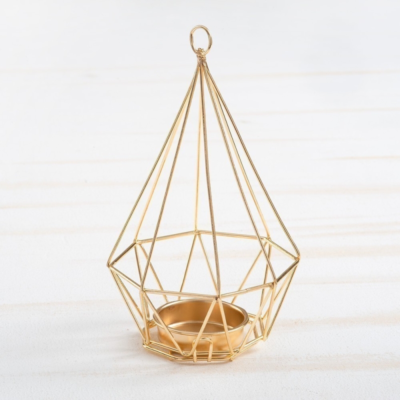 Μεταλλικό πολυγωνικό διακοσμητικό με βάση για ρεσώ σε χρυσό χρώμα. Είναι κρεμαστό και ανοίγει από κάτω ώστε να μπει μέσα το κερί ρεσώ.