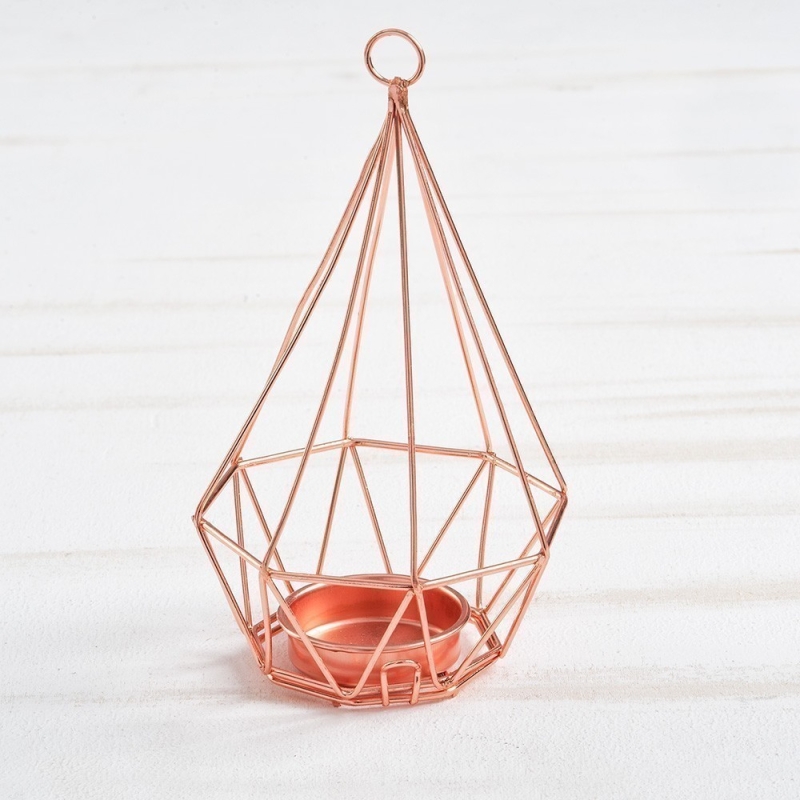 Μεταλλικό πολυγωνικό διακοσμητικό με βάση για ρεσώ σε rose gold χρώμα. Είναι κρεμαστό και ανοίγει από κάτω ώστε να μπει μέσα το κερί ρεσώ.