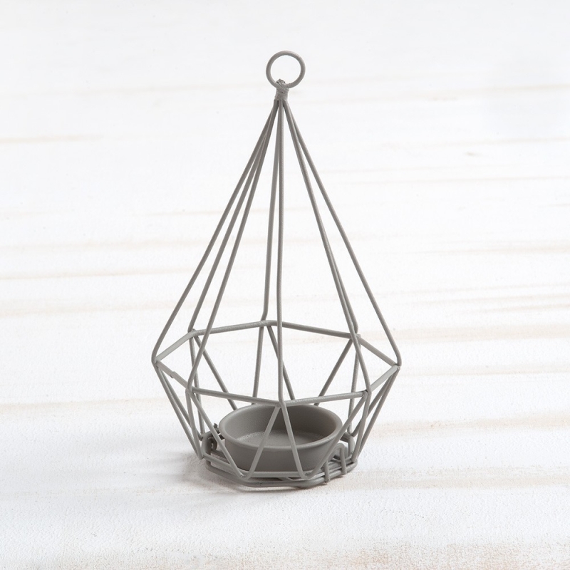 Μεταλλικό πολυγωνικό διακοσμητικό με βάση για ρεσώ σε ματ γκρι χρώμα. Είναι κρεμαστό και ανοίγει από κάτω ώστε να μπει μέσα το κερί ρεσώ.