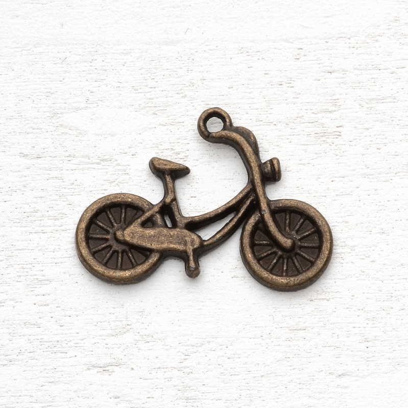 Μεταλλικό κρεμαστό διακοσμητικό ποδήλατο με τρύπα σε χρώμα bronze. Κατάλληλο για διακοσμήσεις και χειροποίητες κατασκευές. Η συσκευασία περιέχει 10 τεμάχια.