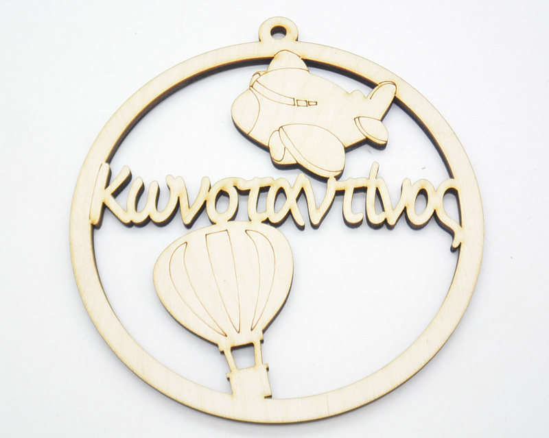 Ξύλινο Διακοσμητικό αερόστατο - αεροπλάνο με όνομα (600517)