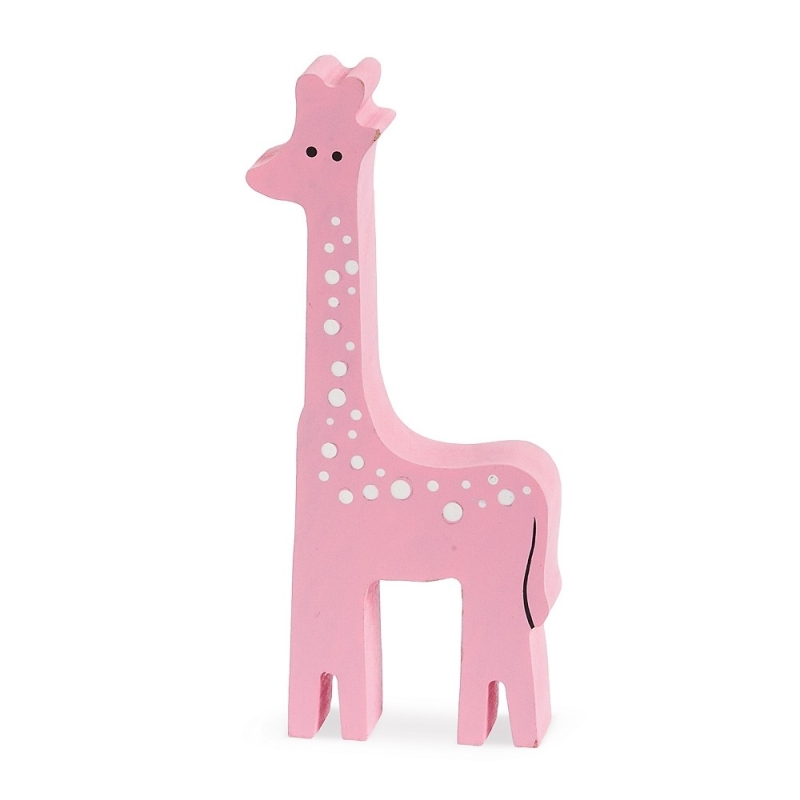Ξύλινη διακοσμητική 3D καμηλοπάρδαλη σε χρώμα ροζ με λεπτομέρειες πουά λευκό.