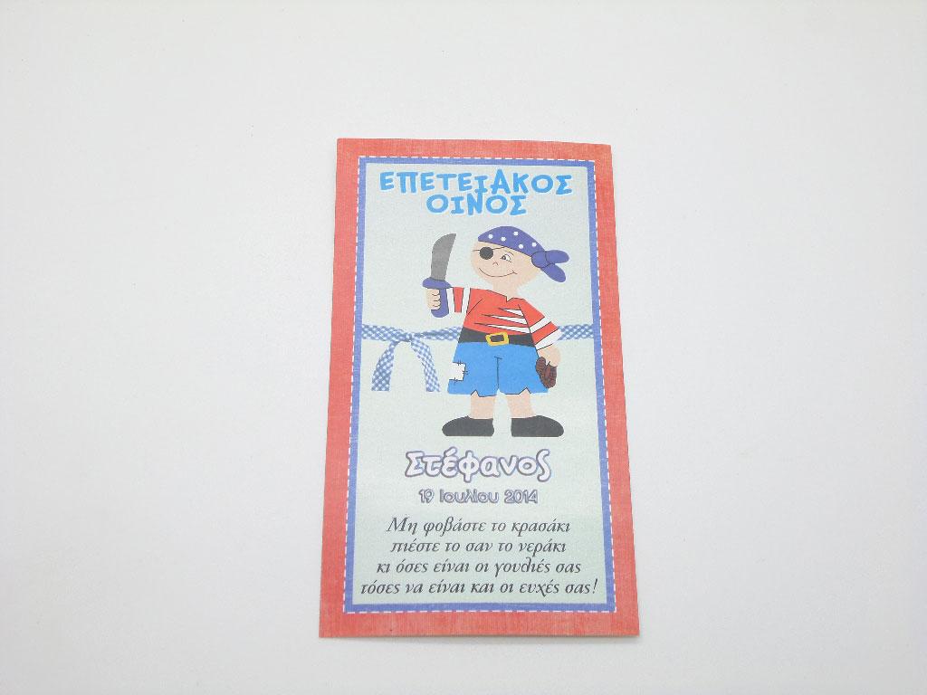 Ετικέτα Κρασιού πειρατής με προσωπικό χαρακτήρα για εντυπωσιακό στολισμό στην δεξίωση της βάπτισης του παιδιού σας.