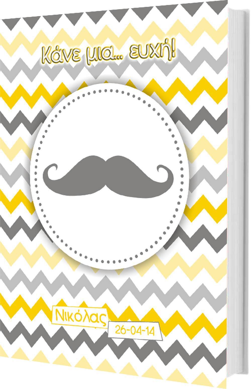 Βιβλίο ευχών με θέμα μουστάκι με διαστάσεις 30 x 21.5 cm.  Μπορούμε να προσαρμόσουμε οποιο άλλο θέμα θέλετε.