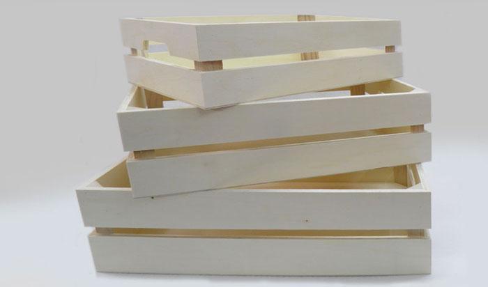 Ξύλινα Καφάσια χαμηλά σετ των 3 με διάσταση 40 x 30 x 10.5 εκ το μεγάλο και 36 x 26 x 9.8 εκ το μεσαίο και 32 x 22 x 8.9 εκ το μικρό. Η τιμή αφορά τα 3 τεμάχια.