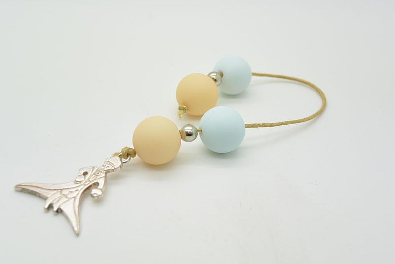 Μπεγλέρι Βάπτισης μικρός πρίγκιπας σε σιέλ - σομόν απόχρωση. Η τιμή αφορά μόνο το μπεγλέρι, με επιπλέον χρέωση μπορεί να γίνει ολοκληρωμένη μπομπονιέρα. Η χάντρα έχει διάμετρο 1.6 εκ.