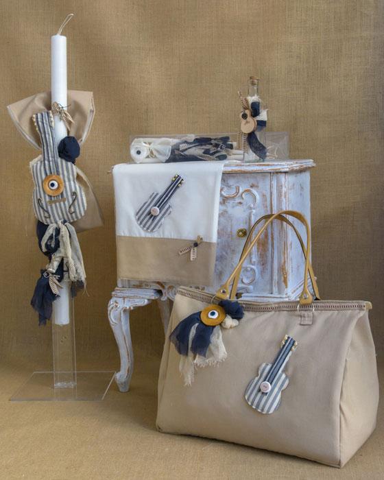 Σετ Βάπτισης βιολί μουσική. Το σετ περιλαμβάνει βαλίτσα χειροποίητη, σετ λαδόπανα, λαμπάδα και σετ λαδικού όλα στολισμένα στο ίδιο θέμα.