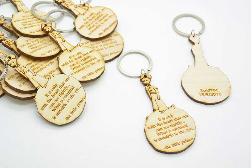Ξύλινο Μπρελόκ μικρός πρίγκιπας με χαραγμένο κείμενο και στο πίσω μέρος το όνομα του παιδιού. Η τιμή αφορά το μπρελόκ. Ελάχιστη ποσότητα 50 τεμάχια.