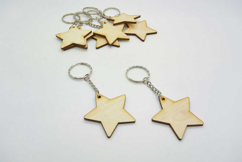 Ξύλινο Μπρελόκ αστέρι με διάσταση 11 εκ. Η τιμή αφορά το μπρελόκ. Ελάχιστη ποσότητα 50 τεμάχια.