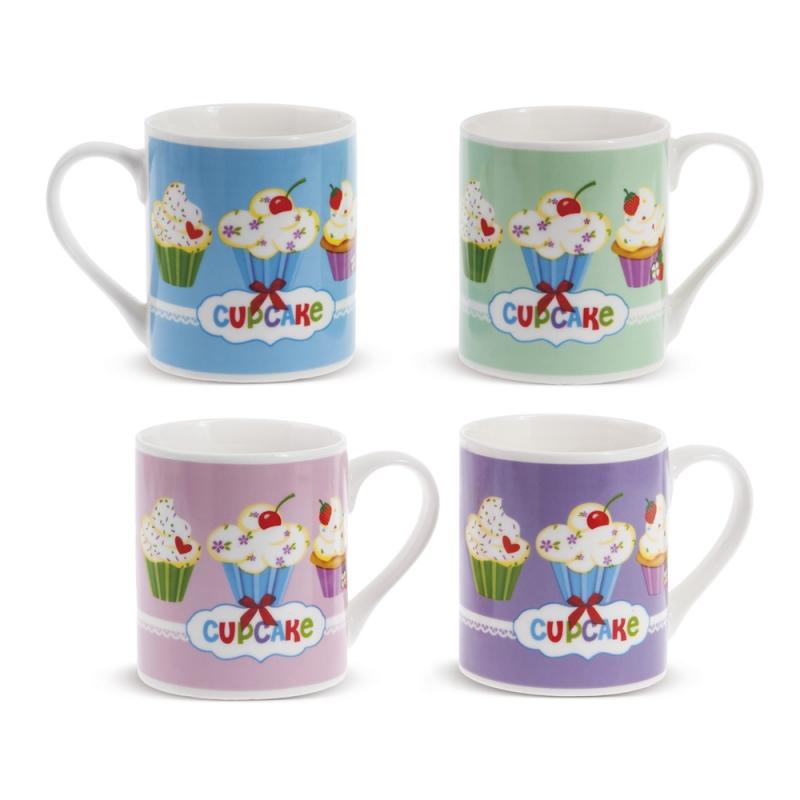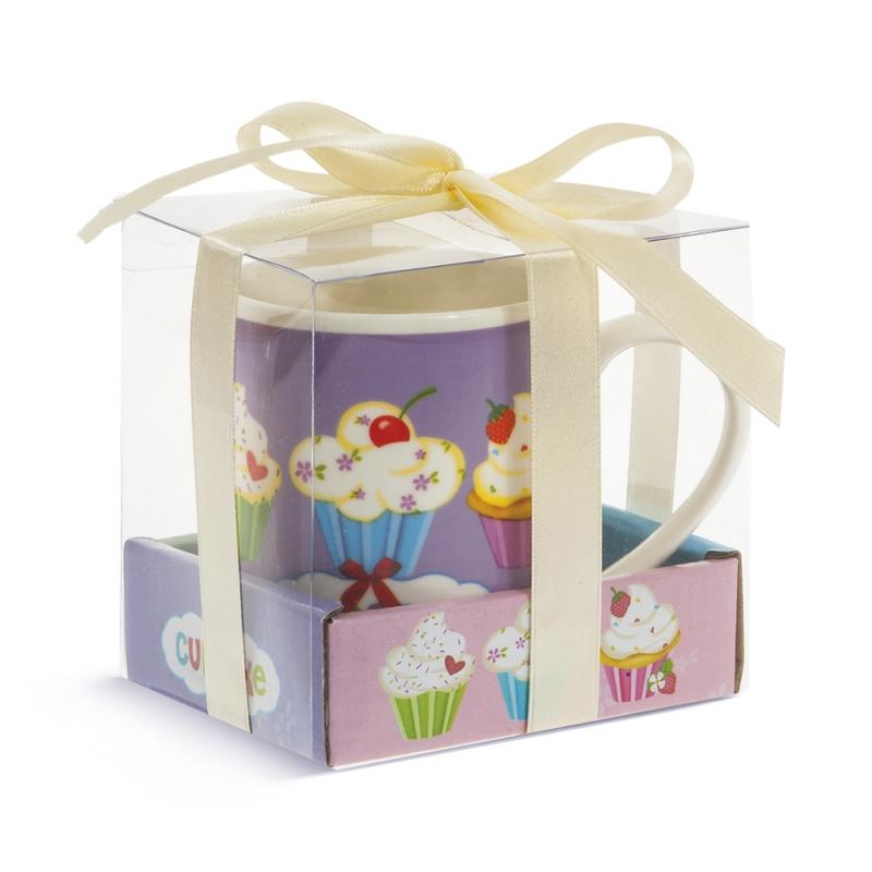 Μπομπονιέρα Βάπτισης κούπα Cupcakes από πορσελάνη σε 4 σχέδια. Διάσταση κούπας 7,4 x 8,5 cm και κουτιού 10 x 8 x 8,4 cm. Η τιμή αφορά δεμένη μπομπονιέρα με 5 κουφέτα αμυγδάλου ή 9 κουφετάκια smarties.