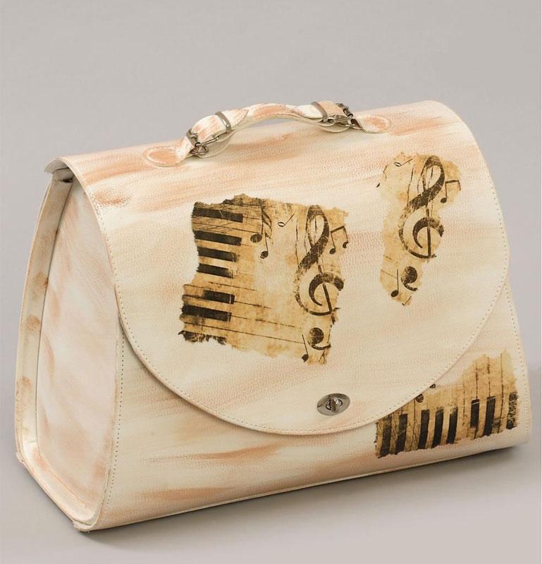 Τσάντα βάπτισης από δερματίνη με decoupage μουσική. Διαστάσεις 47 x 32 x 37 cm.