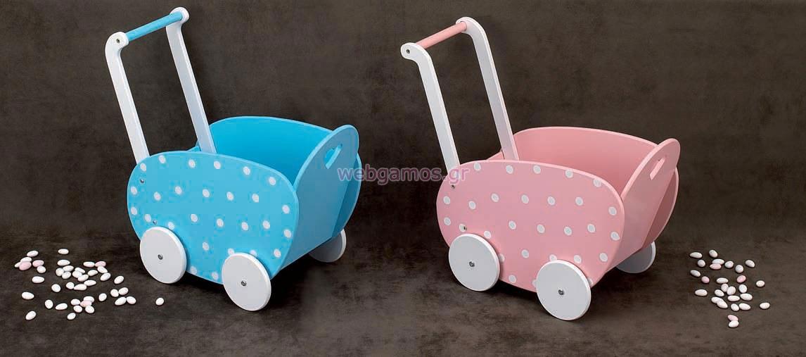 Καροτσάκι για μπομπονιέρες σε 2 αποχρώσεις. Διαστάσεις 40 x 25 x 35 cm.