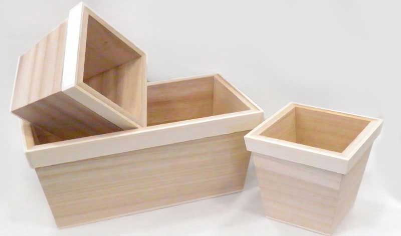 Ξύλινες Γλάστρες σετ των 3 τεμαχίων σε φυσική άβαφη απόχρωση. Διάσταση μεγάλη γλάστρα 23x13x10.5cm και μικρή 10x10x10cm.