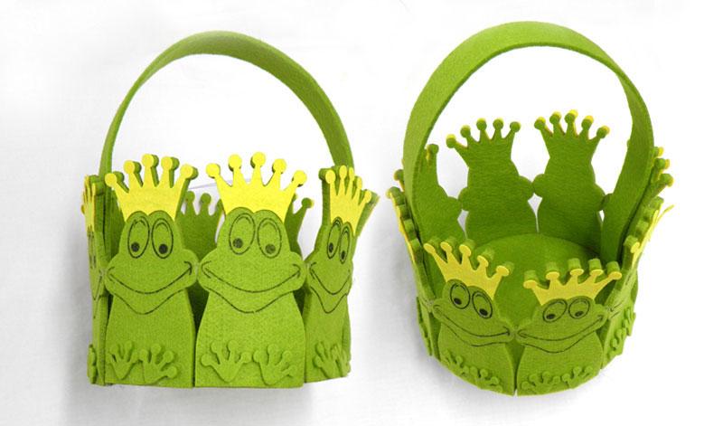 Καλαθάκι τσόχα με 8 βατράχους ιδανικό για διακόσμηση βάπτισης. Προτείνεται γεμισμένο με διάφορα ζαχαρωτά της επιλογής σας. Διαστάσεις ύψος 13 cm x βάση 16 cm.