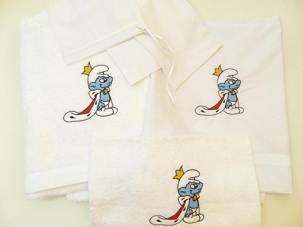 Λαδόπανα ελληνικής κατασκευής άριστης ποιότητας με τον πρίγκιπα στρουμφ. Μπορούμε να φτιάξουμε οποιαδηποτε φιγούρα θελετε. Το σετ περιλαμβάνει πετσέτα μικρή και μεγάλη, σεντονάκι και σετ εσώρουχα.