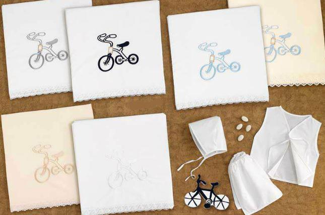 Λαδόπανα Βάπτισης με θέμα ποδήλατο ελληνικής κατασκευής άριστης ποιότητας βαμβακερά σε διάφορες αποχρώσεις. Το σετ περιλαμβάνει πετσέτα μικρή και μεγάλη, σεντονάκι και σετ εσώρουχα.
