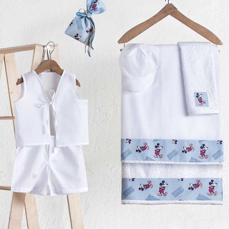 Λαδόπανα mickey mouse σε 2 αποχρώσεις ελληνικής κατασκευής. Το σετ περιλαμβάνει πετσέτα μικρή, πετσέτα μεγάλη, σεντονάκι και σετ εσώρουχα.