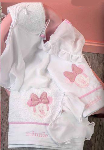 Λαδόπανα άριστης ποιότητας με σχέδιο minnie. Το σετ περιλαμβάνει πετσέτα μικρή και μεγάλη, σεντονάκι και σετ εσώρουχα.